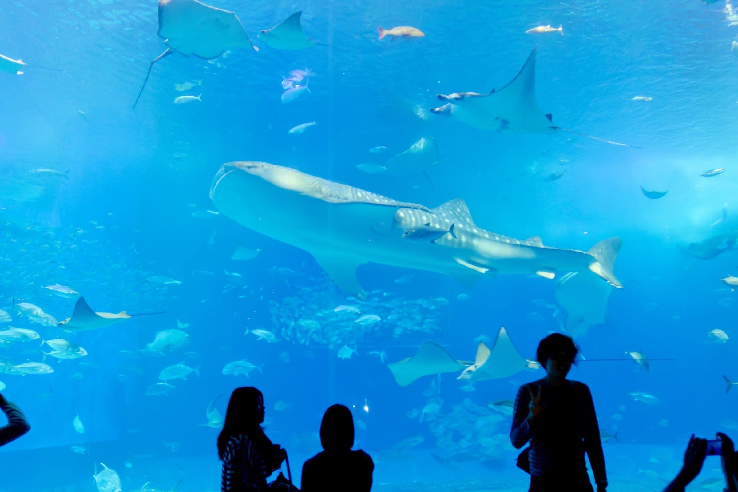 「海洋博公園・沖縄美ら海水族館」は沖縄が誇る人気スポットの一つです。広い館内には世界最大級の水槽や貴重な生き物たちが見られ、中でもジンベエザメが人気です。